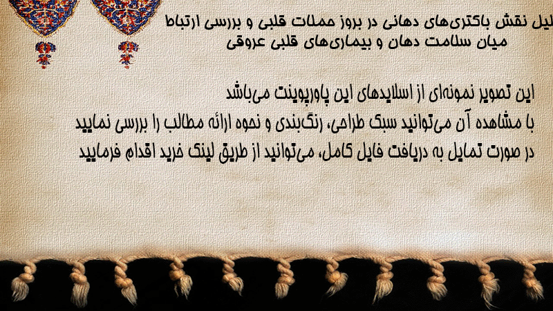 پاورپوینت کامل تحلیل نقش باکتریهای دهانی در بروز حملات قلبی و بررسی ارتباط میان سلامت دهان و بیماریهای قلبی عروقی