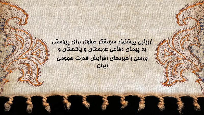 پاورپوینت کامل ارزیابی پیشنهاد سرلشکر صفوی برای پیوستن به پیمان دفاعی عربستان و پاکستان و بررسی راهبردهای افزایش قدرت هجومی ایران