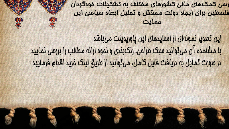 پاورپوینت کامل بررسی کمکهای مالی کشورهای مختلف به تشکیلات خودگردان فلسطین برای ایجاد دولت مستقل و تحلیل ابعاد سیاسی این حمایت