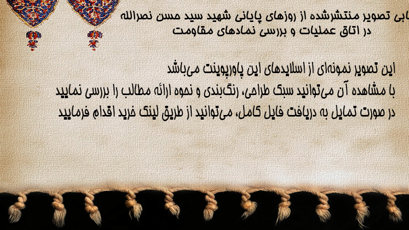 پاورپوینت کامل ارزیابی تصویر منتشرشده از روزهای پایانی شهید سید حسن نصرالله در اتاق عملیات و بررسی نمادهای مقاومت