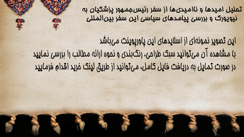 پاورپوینت کامل تحلیل امیدها و ناامیدیها از سفر رئیسجمهور پزشکیان به نیویورک و بررسی پیامدهای سیاسی این سفر بینالمللی