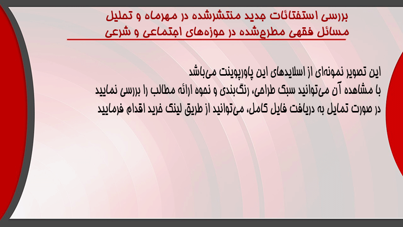 پاورپوینت کامل بررسی استفتائات جدید منتشرشده در مهرماه و تحلیل مسائل فقهی مطرحشده در حوزههای اجتماعی و شرعی