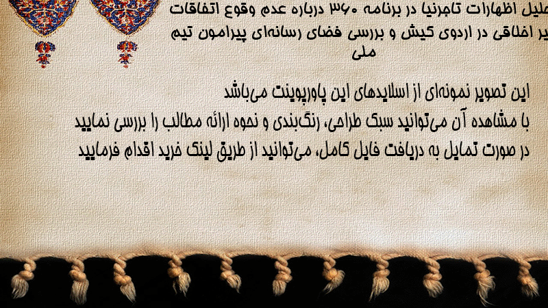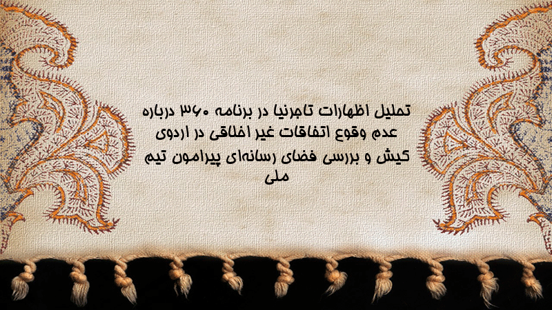 پاورپوینت کامل تحلیل اظهارات تاجرنیا در برنامه ۳۶۰ درباره عدم وقوع اتفاقات غیر اخلاقی در اردوی کیش و بررسی فضای رسانهای پیرامون تیم ملی