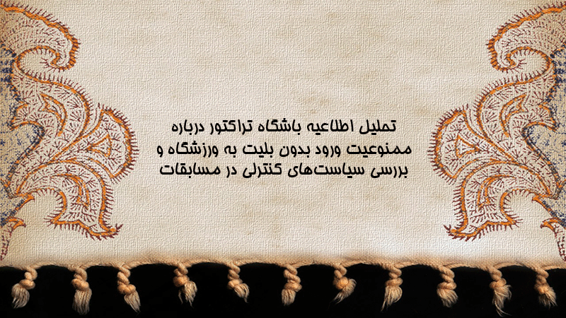 پاورپوینت کامل تحلیل اطلاعیه باشگاه تراکتور درباره ممنوعیت ورود بدون بلیت به ورزشگاه و بررسی سیاستهای کنترلی در مسابقات