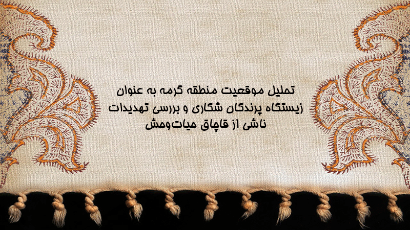 پاورپوینت کامل تحلیل موقعیت منطقه گرمه به عنوان زیستگاه پرندگان شکاری و بررسی تهدیدات ناشی از قاچاق حیاتوحش