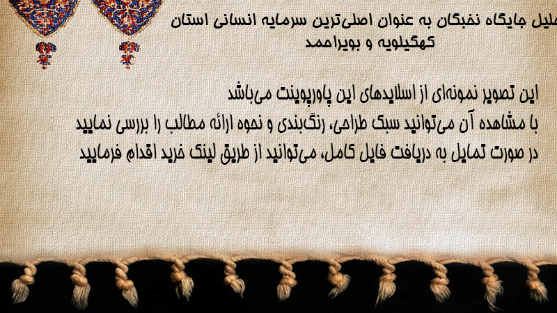 پاورپوینت کامل تحلیل جایگاه نخبگان به عنوان اصلیترین سرمایه انسانی استان کهگیلویه و بویراحمد