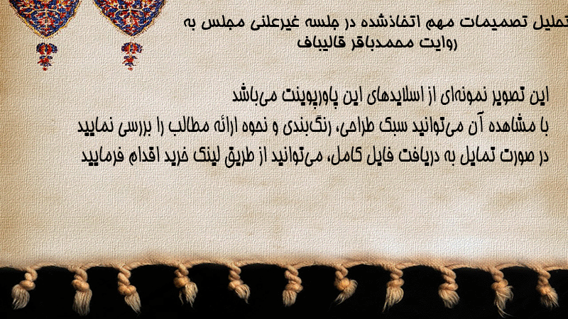 پاورپوینت کامل تحلیل تصمیمات مهم اتخاذشده در جلسه غیرعلنی مجلس به روایت محمدباقر قالیباف