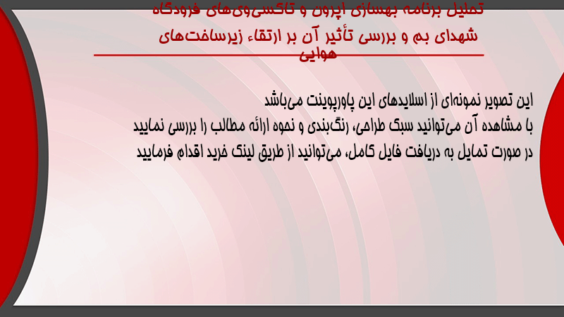 پاورپوینت کامل تحلیل برنامه بهسازی اپرون و تاکسیویهای فرودگاه شهدای بم و بررسی تأثیر آن بر ارتقاء زیرساختهای هوایی