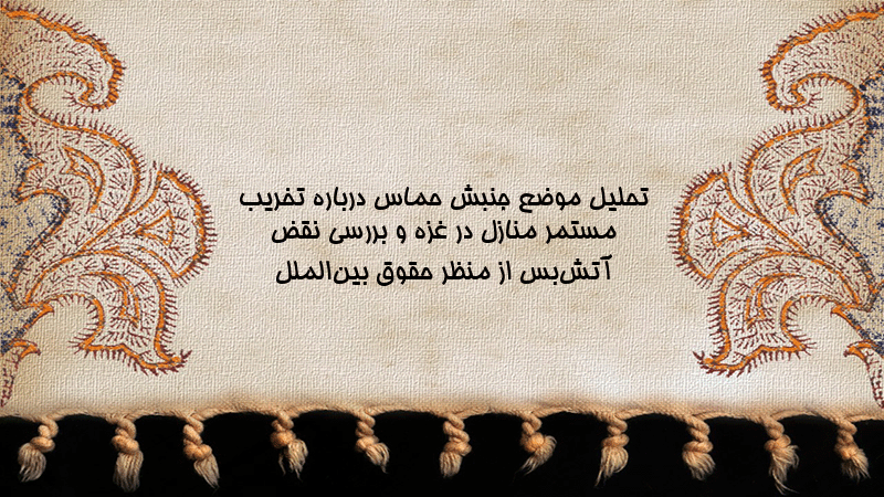 پاورپوینت کامل تحلیل موضع جنبش حماس درباره تخریب مستمر منازل در غزه و بررسی نقض آتشبس از منظر حقوق بینالملل