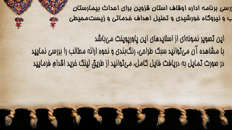 پاورپوینت کامل بررسی برنامه اداره اوقاف استان قزوین برای احداث بیمارستان قلب و نیروگاه خورشیدی و تحلیل اهداف خدماتی و زیستمحیطی
