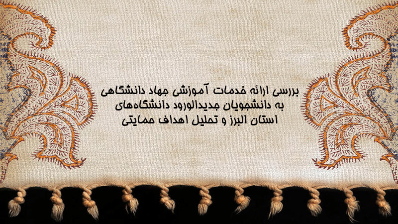 پاورپوینت کامل بررسی ارائه خدمات آموزشی جهاد دانشگاهی به دانشجویان جدیدالورود دانشگاههای استان البرز و تحلیل اهداف حمایتی