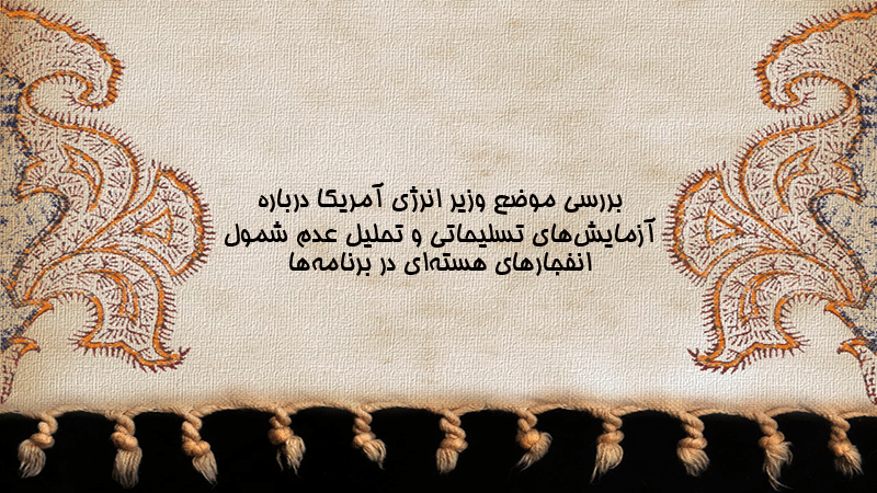پاورپوینت کامل بررسی موضع وزیر انرژی آمریکا درباره آزمایشهای تسلیحاتی و تحلیل عدم شمول انفجارهای هستهای در برنامهها