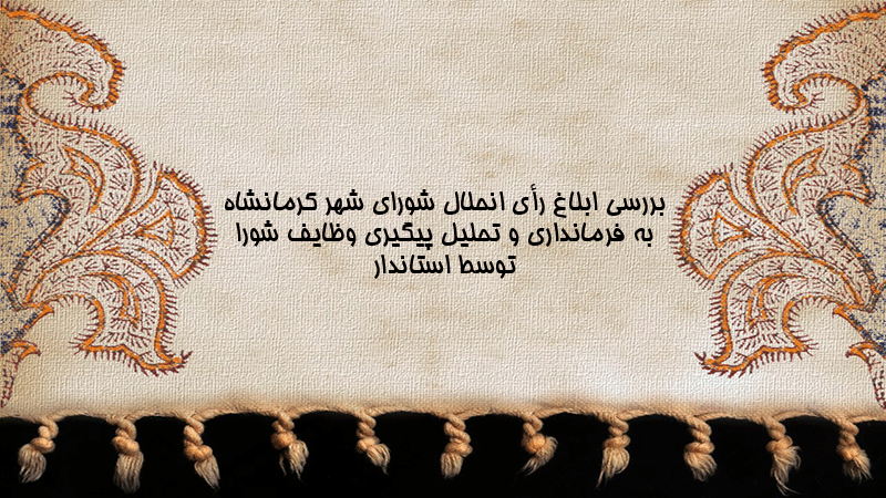 پاورپوینت کامل بررسی ابلاغ رأی انحلال شورای شهر کرمانشاه به فرمانداری و تحلیل پیگیری وظایف شورا توسط استاندار