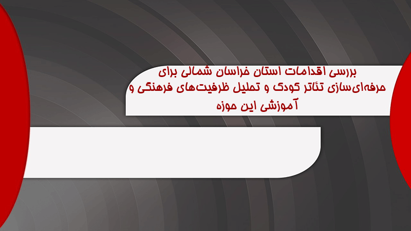 پاورپوینت کامل بررسی اقدامات استان خراسان شمالی برای حرفهایسازی تئاتر کودک و تحلیل ظرفیتهای فرهنگی و آموزشی این حوزه