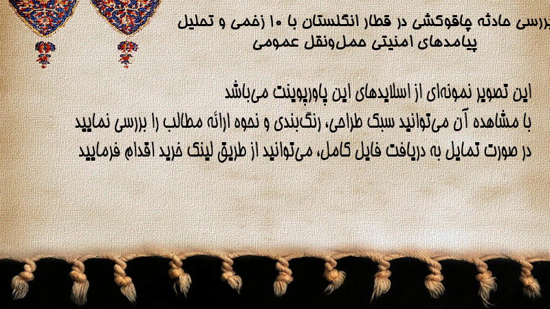 پاورپوینت کامل بررسی حادثه چاقوکشی در قطار انگلستان با ۱۰ زخمی و تحلیل پیامدهای امنیتی حملونقل عمومی