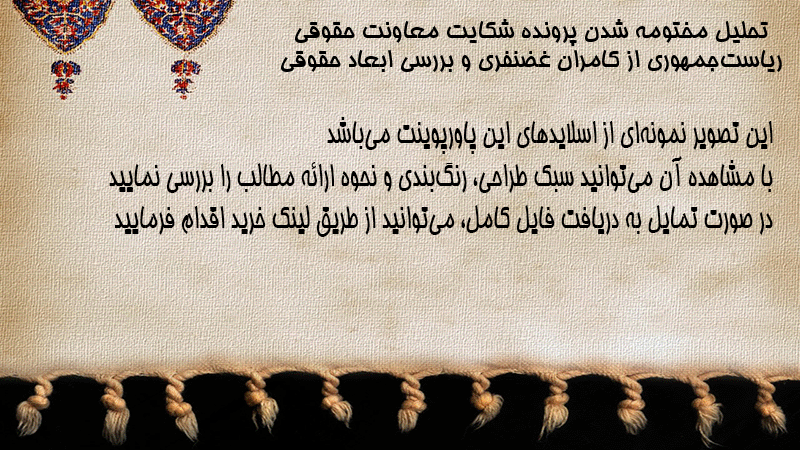 پاورپوینت کامل تحلیل مختومه شدن پرونده شکایت معاونت حقوقی ریاستجمهوری از کامران غضنفری و بررسی ابعاد حقوقی