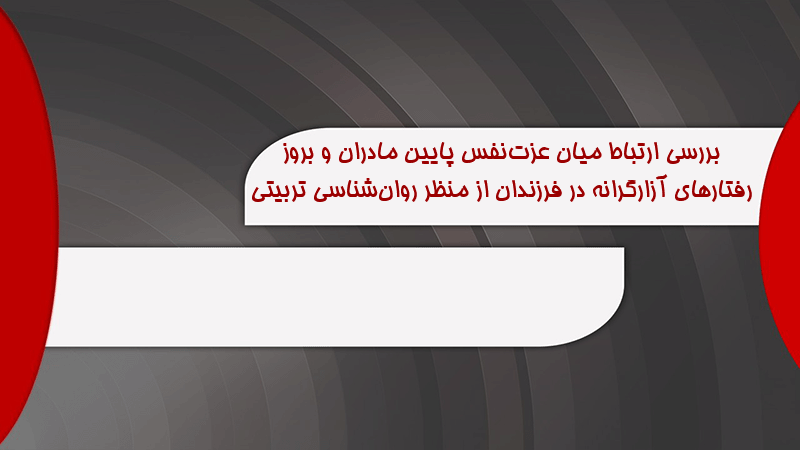 پاورپوینت کامل بررسی ارتباط میان عزتنفس پایین مادران و بروز رفتارهای آزارگرانه در فرزندان از منظر روانشناسی تربیتی