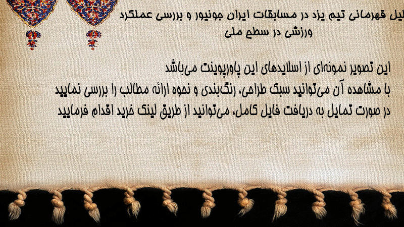 پاورپوینت کامل تحلیل قهرمانی تیم یزد در مسابقات ایران جونیور و بررسی عملکرد ورزشی در سطح ملی