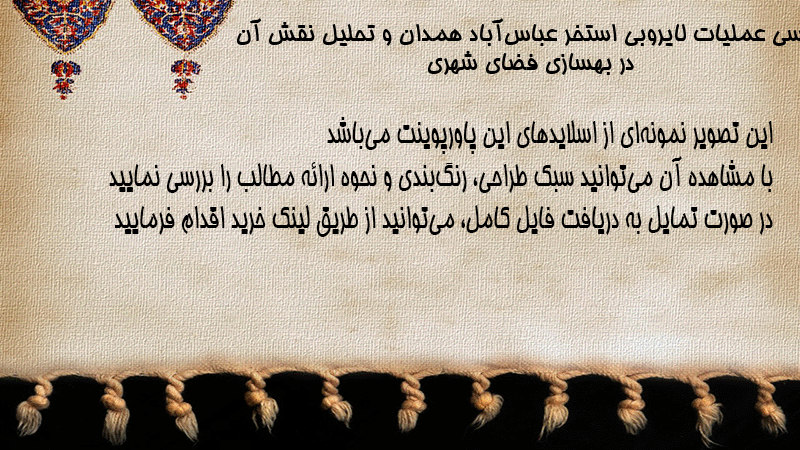 پاورپوینت کامل بررسی عملیات لایروبی استخر عباسآباد همدان و تحلیل نقش آن در بهسازی فضای شهری