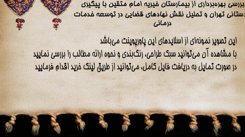 پاورپوینت کامل بررسی بهرهبرداری از بیمارستان خیریه امام متقین با پیگیری دادستانی تهران و تحلیل نقش نهادهای قضایی در توسعه خدمات درمانی