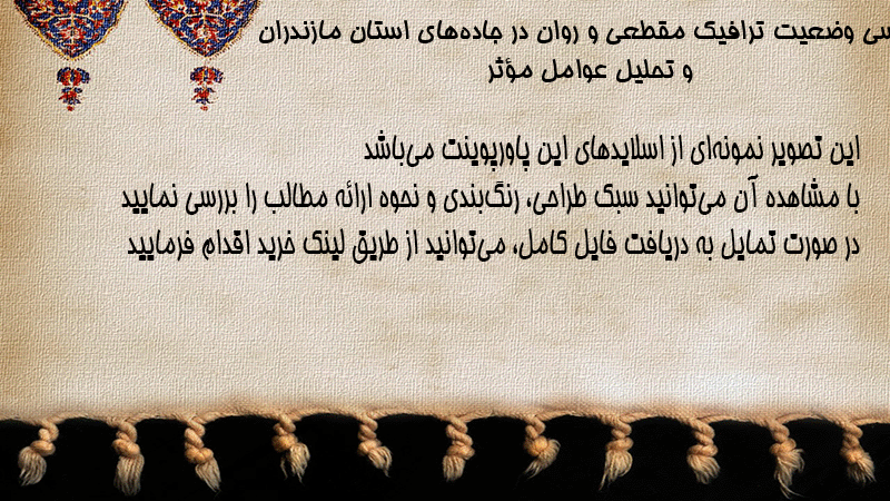 پاورپوینت کامل بررسی وضعیت ترافیک مقطعی و روان در جادههای استان مازندران و تحلیل عوامل مؤثر