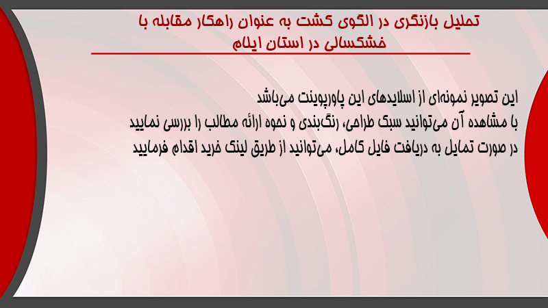 پاورپوینت کامل تحلیل بازنگری در الگوی کشت به عنوان راهکار مقابله با خشکسالی در استان ایلام