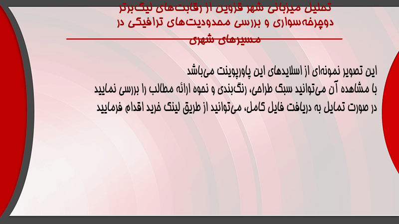 پاورپوینت کامل تحلیل میزبانی شهر قزوین از رقابتهای لیگبرتر دوچرخهسواری و بررسی محدودیتهای ترافیکی در مسیرهای شهری