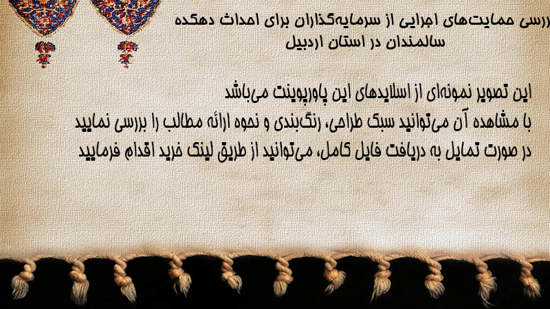 پاورپوینت کامل بررسی حمایتهای اجرایی از سرمایهگذاران برای احداث دهکده سالمندان در استان اردبیل