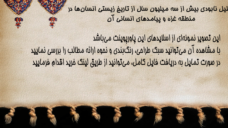 پاورپوینت کامل تحلیل نابودی بیش از سه میلیون سال از تاریخ زیستی انسانها در منطقه غزه و پیامدهای انسانی آن