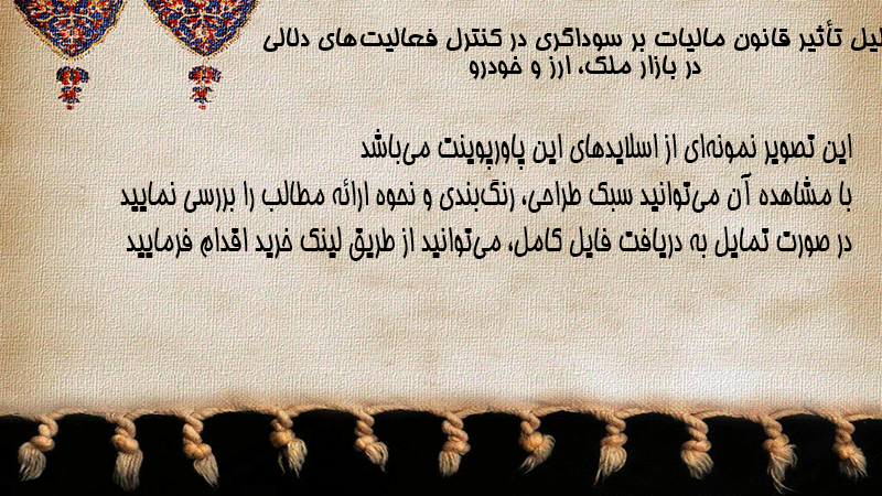 پاورپوینت کامل تحلیل تأثیر قانون مالیات بر سوداگری در کنترل فعالیتهای دلالی در بازار ملک، ارز و خودرو
