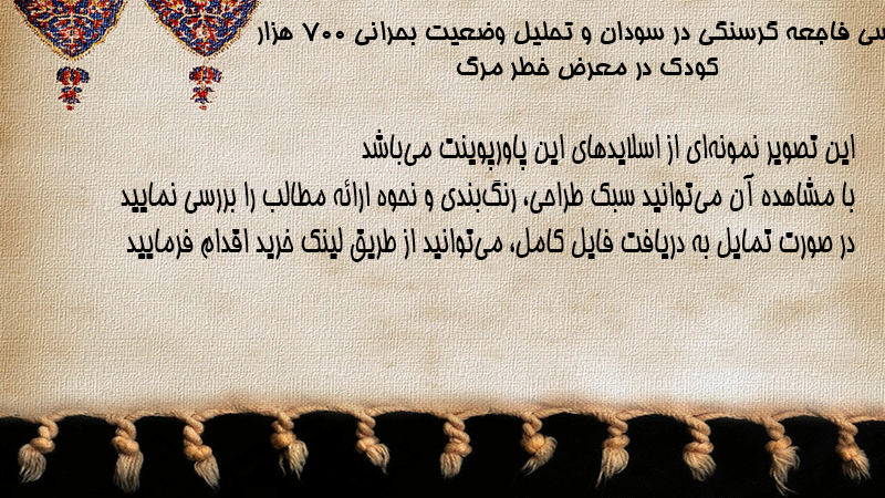 پاورپوینت کامل بررسی فاجعه گرسنگی در سودان و تحلیل وضعیت بحرانی ۷۰۰ هزار کودک در معرض خطر مرگ