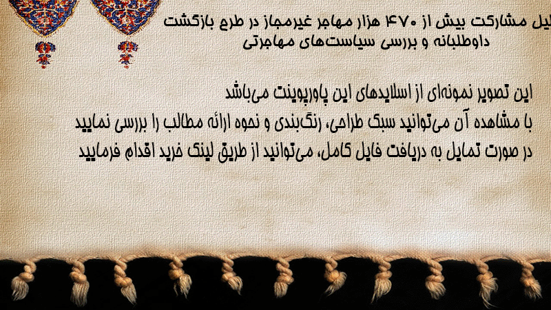 پاورپوینت کامل تحلیل مشارکت بیش از ۴۷۰ هزار مهاجر غیرمجاز در طرح بازگشت داوطلبانه و بررسی سیاستهای مهاجرتی