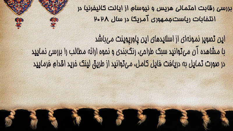 پاورپوینت کامل بررسی رقابت احتمالی هریس و نیوسام از ایالت کالیفرنیا در انتخابات ریاستجمهوری آمریکا در سال ۲۰۲۸