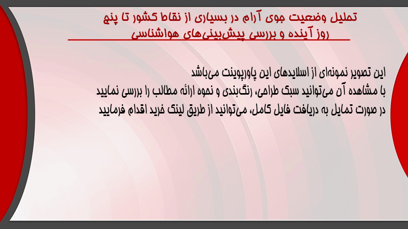 پاورپوینت کامل تحلیل وضعیت جوی آرام در بسیاری از نقاط کشور تا پنج روز آینده و بررسی پیشبینیهای هواشناسی