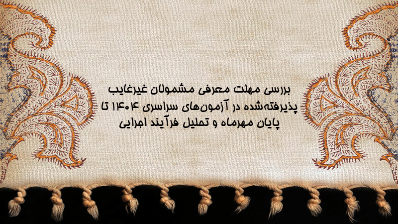پاورپوینت کامل بررسی مهلت معرفی مشمولان غیرغایب پذیرفتهشده در آزمونهای سراسری ۱۴۰۴ تا پایان مهرماه و تحلیل فرآیند اجرایی