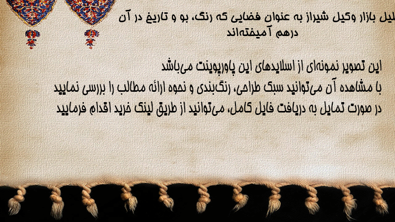 پاورپوینت کامل تحلیل بازار وکیل شیراز به عنوان فضایی که رنگ، بو و تاریخ در آن درهم آمیختهاند