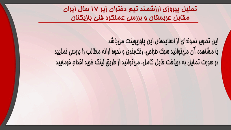 پاورپوینت کامل تحلیل پیروزی ارزشمند تیم دختران زیر ۱۷ سال ایران مقابل عربستان و بررسی عملکرد فنی بازیکنان