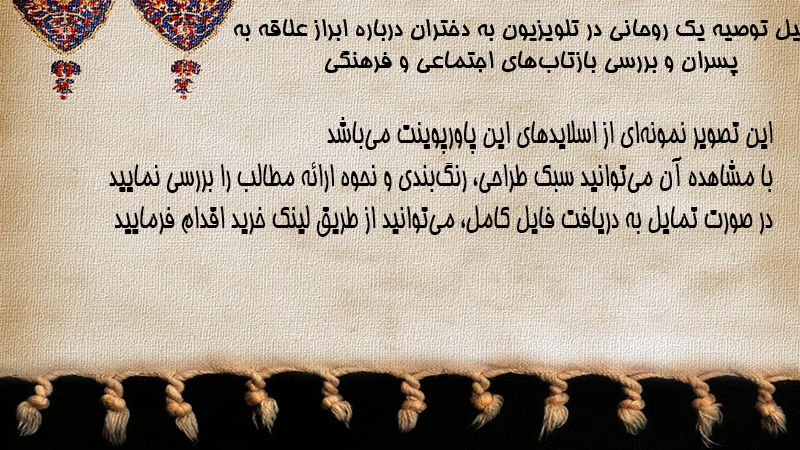 پاورپوینت کامل تحلیل توصیه یک روحانی در تلویزیون به دختران درباره ابراز علاقه به پسران و بررسی بازتابهای اجتماعی و فرهنگی