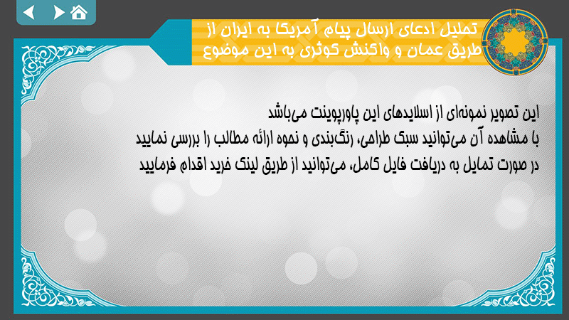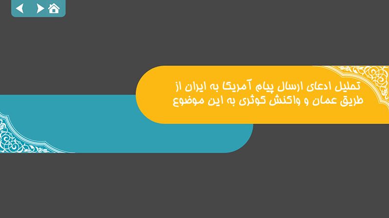 پاورپوینت کامل تحلیل ادعای ارسال پیام آمریکا به ایران از طریق عمان و واکنش کوثری به این موضوع