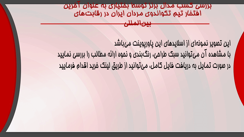 پاورپوینت کامل بررسی کسب مدال برنز توسط بختیاری به عنوان آخرین افتخار تیم تکواندوی مردان ایران در رقابتهای بینالمللی