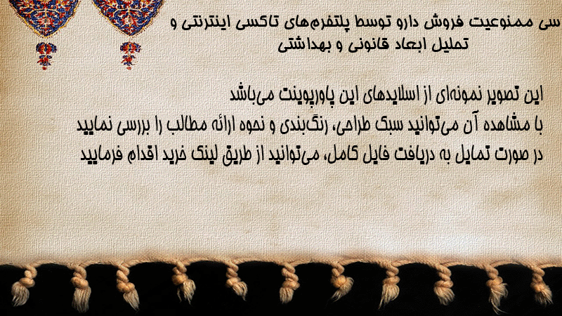 پاورپوینت کامل بررسی ممنوعیت فروش دارو توسط پلتفرمهای تاکسی اینترنتی و تحلیل ابعاد قانونی و بهداشتی