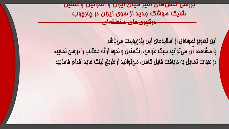 پاورپوینت کامل بررسی تنشهای اخیر میان ایران و اسرائیل و تحلیل شلیک موشک جدید از سوی ایران در چارچوب درگیریهای منطقهای