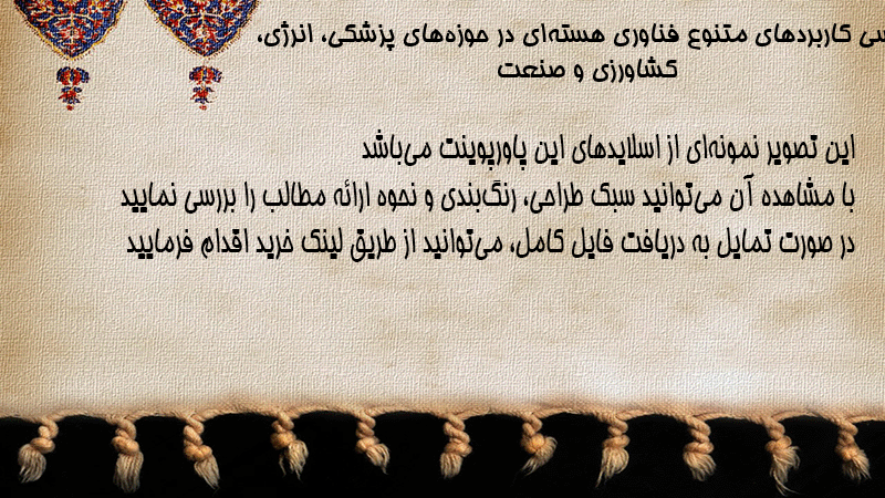 پاورپوینت کامل بررسی کاربردهای متنوع فناوری هستهای در حوزههای پزشکی، انرژی، کشاورزی و صنعت
