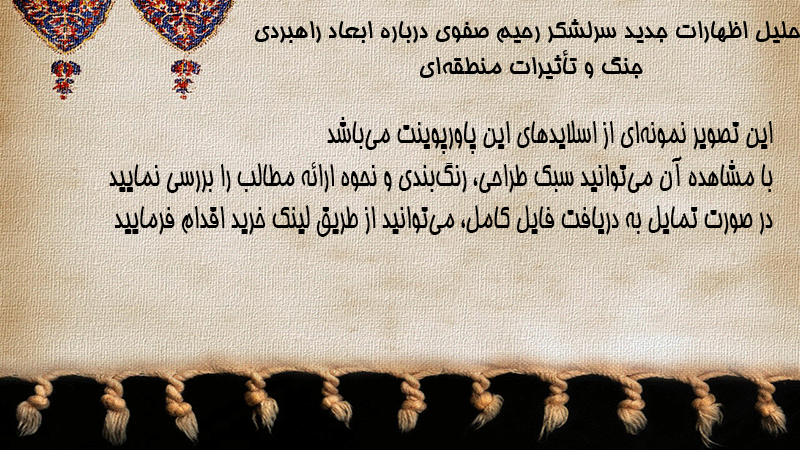 پاورپوینت کامل تحلیل اظهارات جدید سرلشکر رحیم صفوی درباره ابعاد راهبردی جنگ و تأثیرات منطقهای