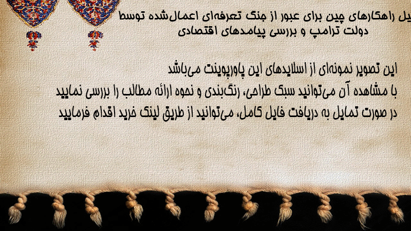 پاورپوینت کامل تحلیل راهکارهای چین برای عبور از جنگ تعرفهای اعمالشده توسط دولت ترامپ و بررسی پیامدهای اقتصادی