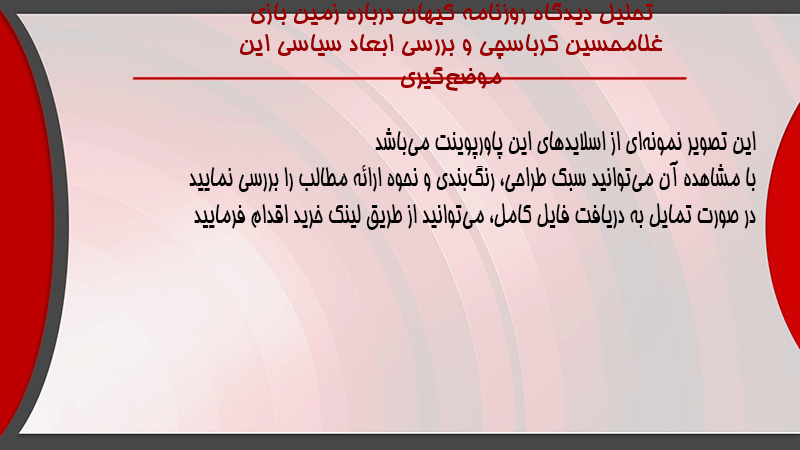 پاورپوینت کامل تحلیل دیدگاه روزنامه کیهان درباره زمین بازی غلامحسین کرباسچی و بررسی ابعاد سیاسی این موضعگیری