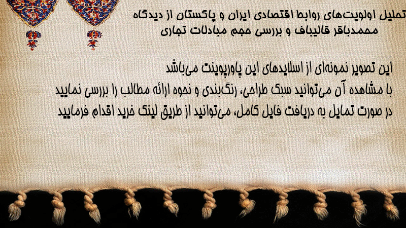 پاورپوینت کامل تحلیل اولویتهای روابط اقتصادی ایران و پاکستان از دیدگاه محمدباقر قالیباف و بررسی حجم مبادلات تجاری