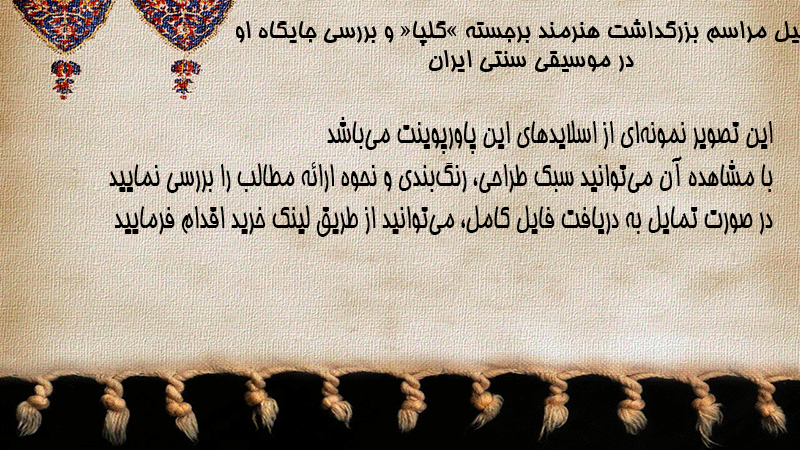پاورپوینت کامل تحلیل مراسم بزرگداشت هنرمند برجسته «گلپا» و بررسی جایگاه او در موسیقی سنتی ایران
