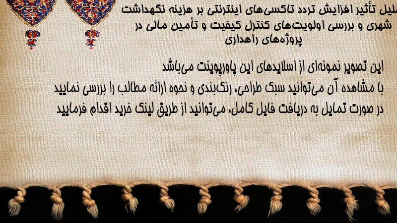 پاورپوینت کامل تحلیل تأثیر افزایش تردد تاکسیهای اینترنتی بر هزینه نگهداشت شهری و بررسی اولویتهای کنترل کیفیت و تأمین مالی در پروژههای راهداری
