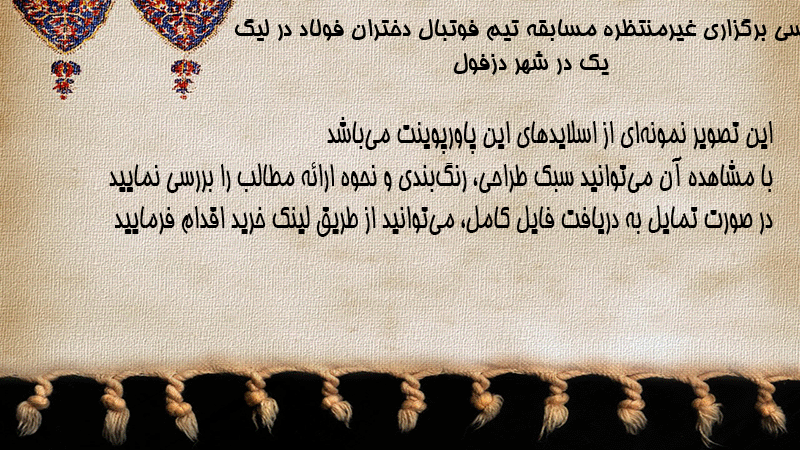 پاورپوینت کامل بررسی برگزاری غیرمنتظره مسابقه تیم فوتبال دختران فولاد در لیگ یک در شهر دزفول